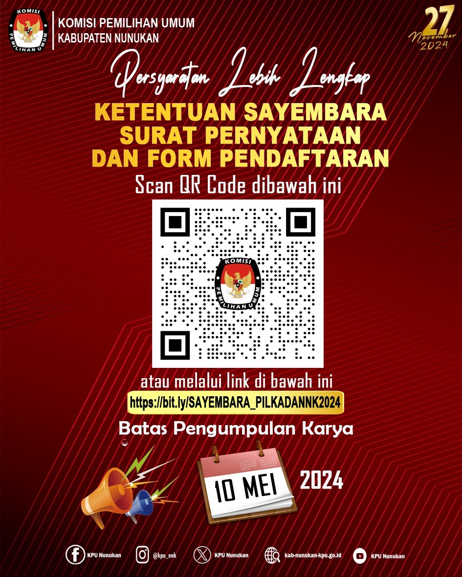 #TemanPemilih ayo ikuti dan tunjukan kreativitasmu dalam rangka lomba Sayembara Maskot dan Jingle Pemilihan Bupati dan Wakil Bupati Nunukan Tahun 2024